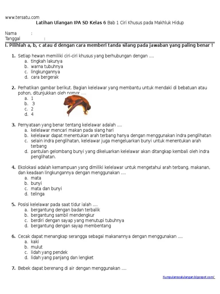 Soal latihan ipa kelas 6 ciri khusus makhluk hidup dan lingkungannya 1.